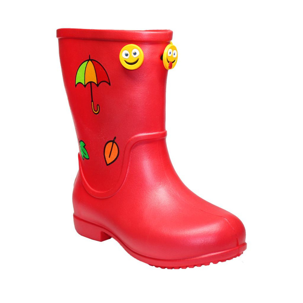 Фактические размеры стельки: 22р - 13,5-14см, 24р - 14,5 - 15см, 26р - 15,5-16см, 28р - 17-17,5см Легкие, водонепроницаемые и яркие сапожки из ЭВА - это надежная обувь для прогулок в дождь и слякоть.