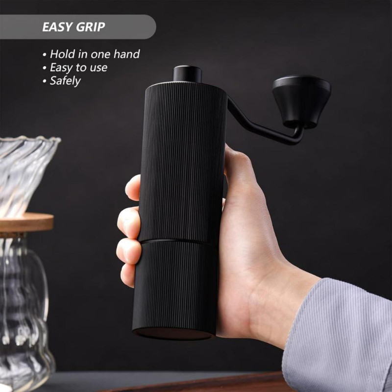 JOQINEER — ручна кавомолка преміум-класу, розроблена для стабільного помелу та високої точності регулювання. Сталеві жорна діаметром 45 мм забезпечують рівномірне подрібнення для всіх методів приготування: від еспресо та гейзерної кавоварки до пуроверу, сифону чи френч-пресу.