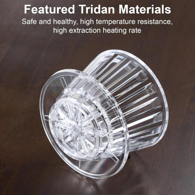 Пуровер изготовлен из тритана (PCTG) — прочного, безопасного для пищевых продуктов материала без BPA. Прозрачная конструкция позволяет наблюдать за процессом заваривания в режиме реального времени и лучше управлять рецептом.