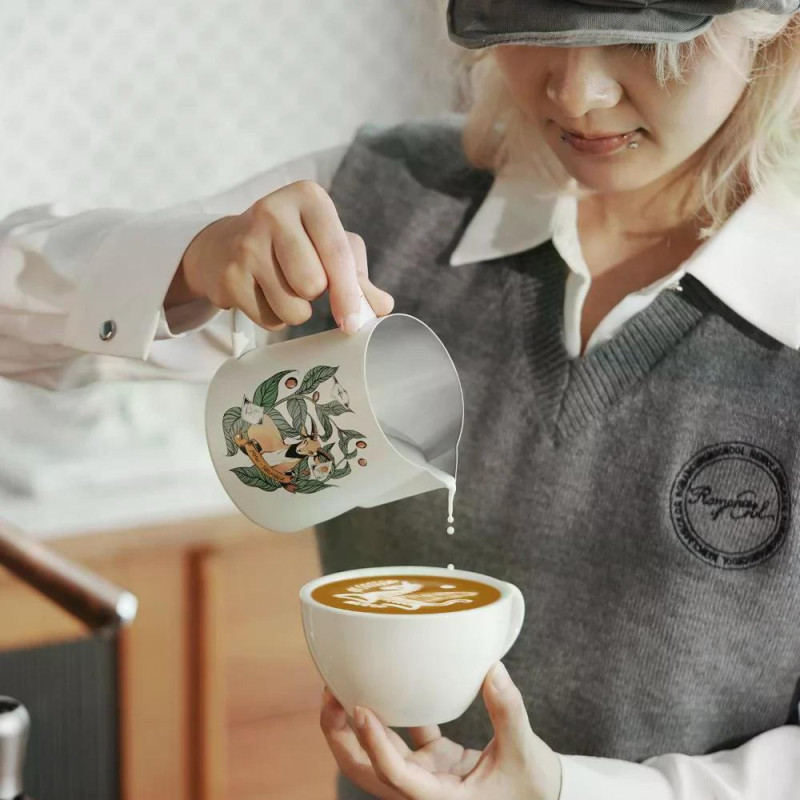 Тонкий носик позволяет создавать красивую латте-арт, делая его идеальным для профессионалов и любителей, которые хотят улучшить качество подачи кофе.