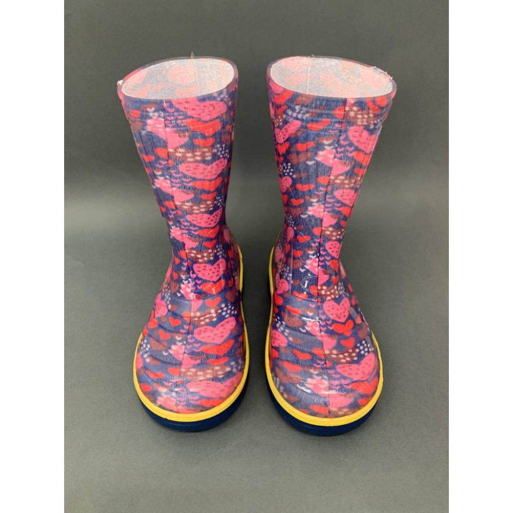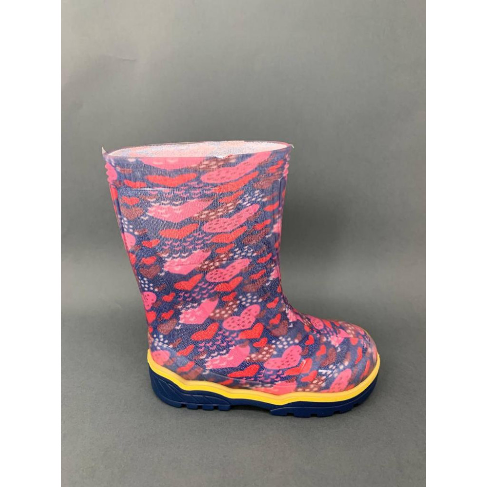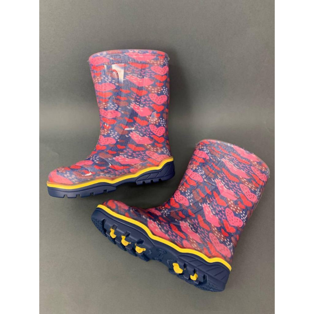 Дитячі гумові чоботи "Сердечка рожеві на синьому"
