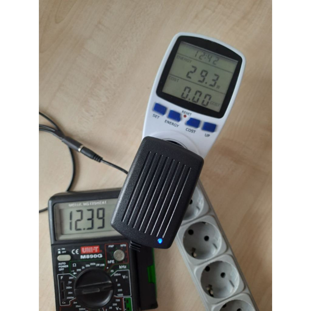 За нашими вимірами, цей блок живлення видає трохи підвищену напругу в порівнянні зі звичайними 12В блоками. Тому він добре підходить для деяких mini UPS, яким для нормального заряджання акумуляторів потрібна вхідна напруга в діапазоні 12-13В.